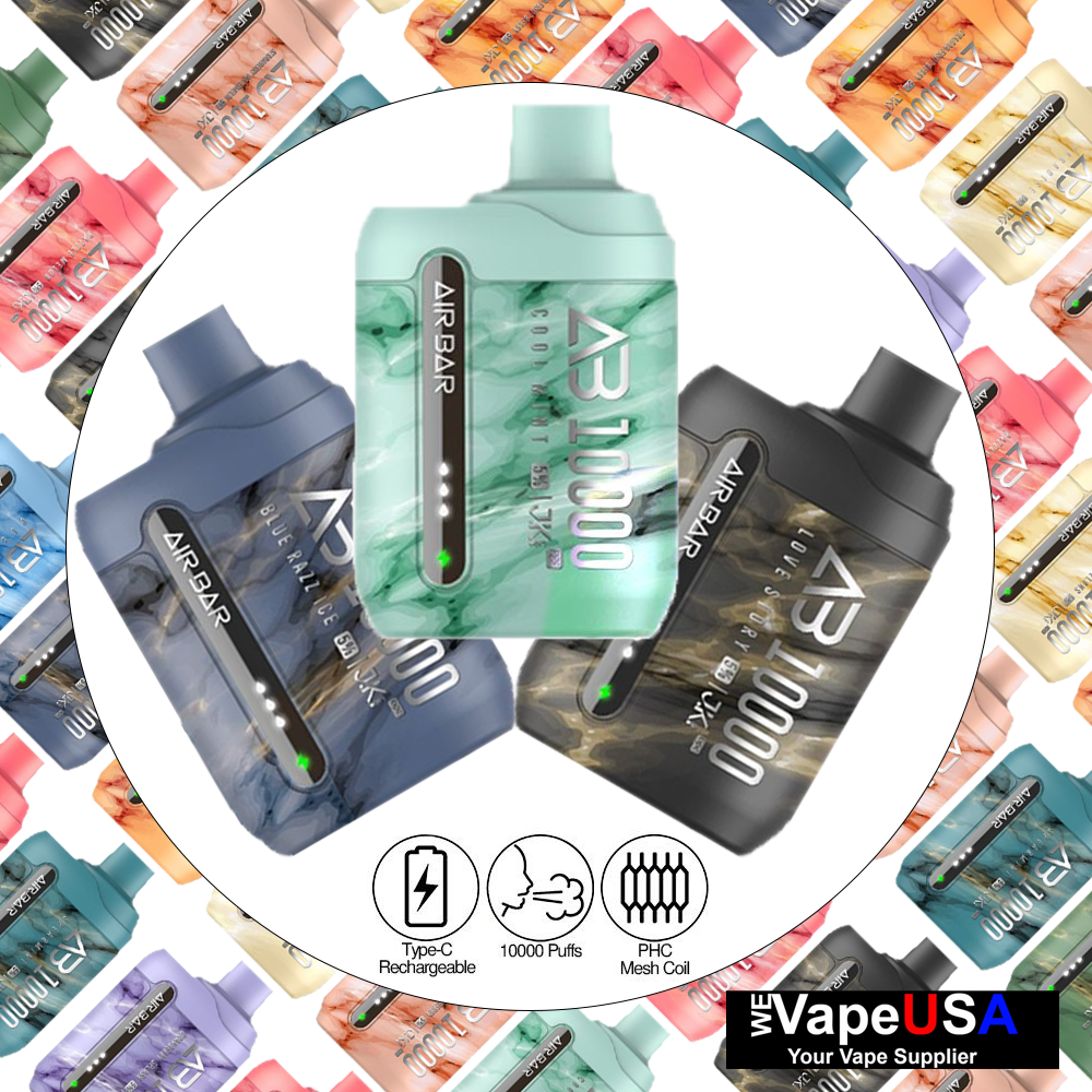 Air Bar AB10000 Disposable Vape is generously loaded with 18ml tasty e-juice and can produce about 10000 puffs with a 650mAh rechargeable battery, a PHC mesh coil and indicator lights for battery life and e-juice level. Air Bar AB10000 has a classic box-like design, which makes it easy to hold in hand. Unlike other disposable vapes, Air Bar vapes are all equipped with a PHC (Pre-Heating Coil) to shorten waiting. You can take a puff whenever you want by simply drawing. The indicator lights effectively show battery status and e-juice volume.