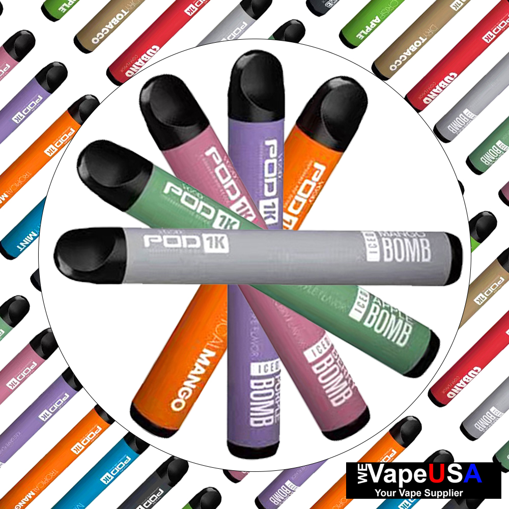 The VGOD POD 1K Disposable Pod Devices have a maximum e-juice capacity of 4ml and are filled with 50mg of salt nic. Each POD 1K disposable vape pod device comes a single device (1). This device requires no maintenance due to it’s simple and disposable nature. The POD 1K features no buttons and is automatically activated when you inhale.